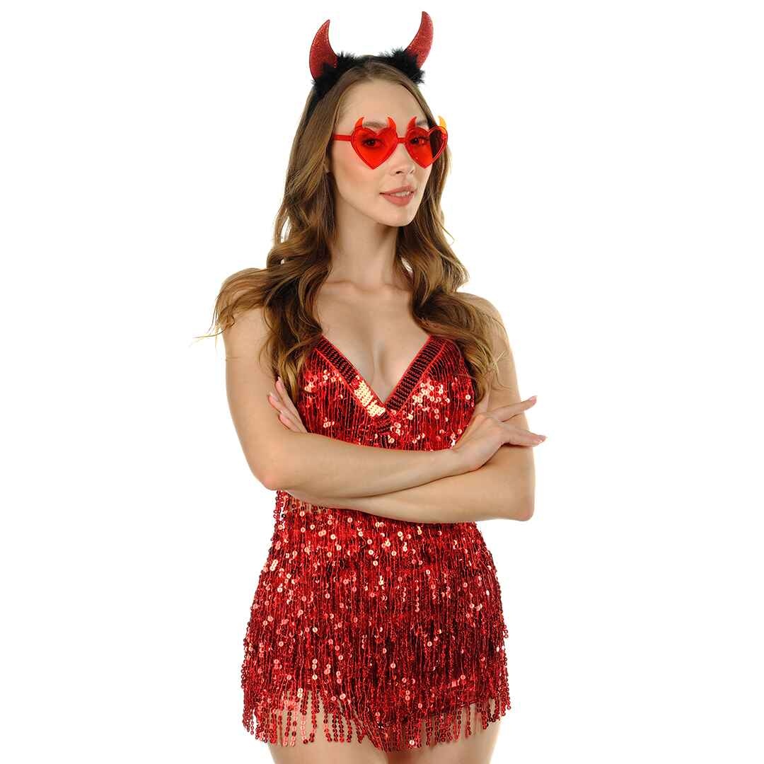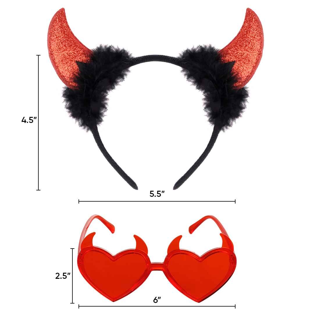 Red devil horn comes with devil horn red tinted glasses.