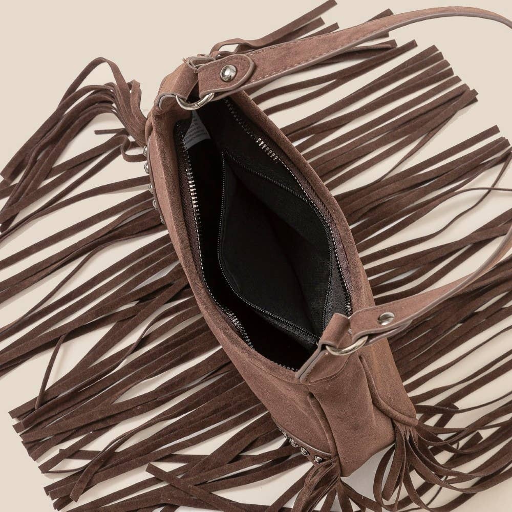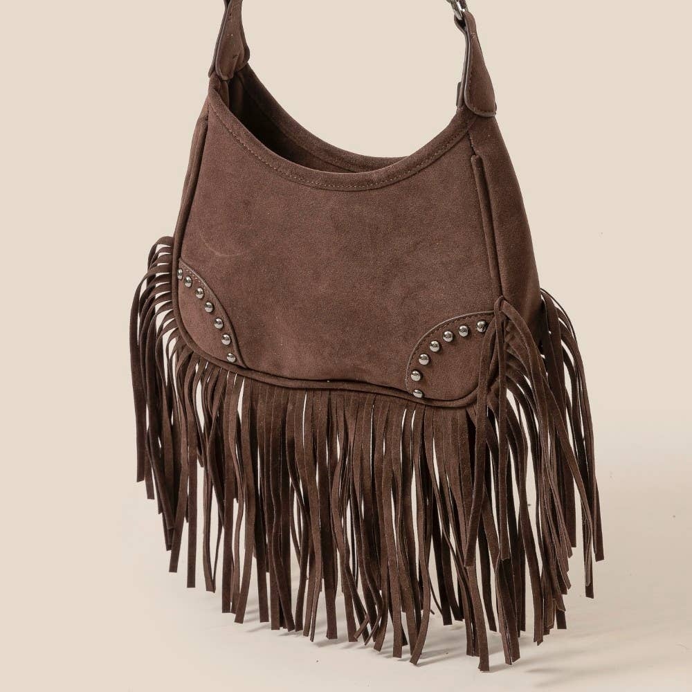 Faux Suede Fringe Shoulder Bag Dk. Brown