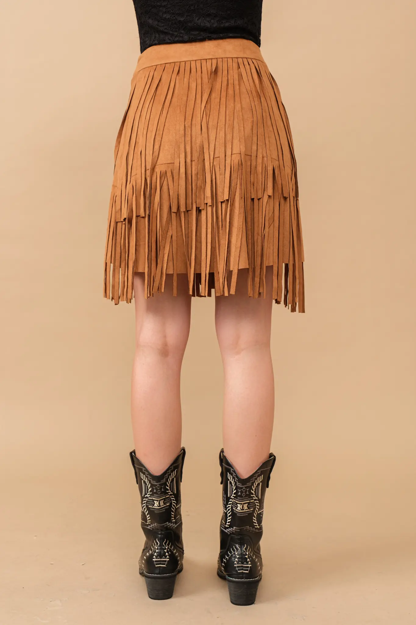 Faux Suede Wrap Fringe Skirt