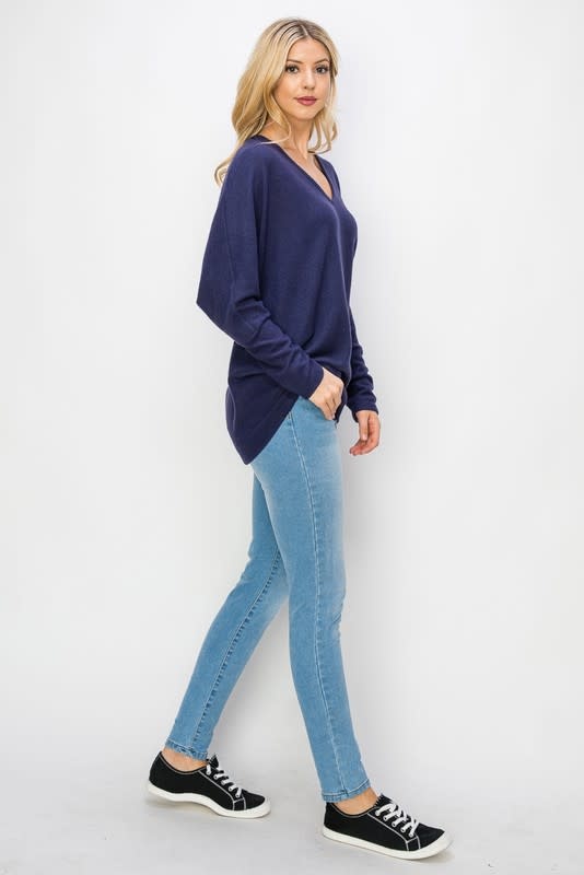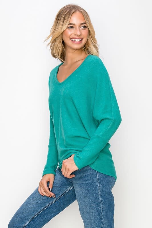 Details - v-neck, long sleeve, brushed, solid Composition - 70% rayon, 26% polyester, 4% spandex