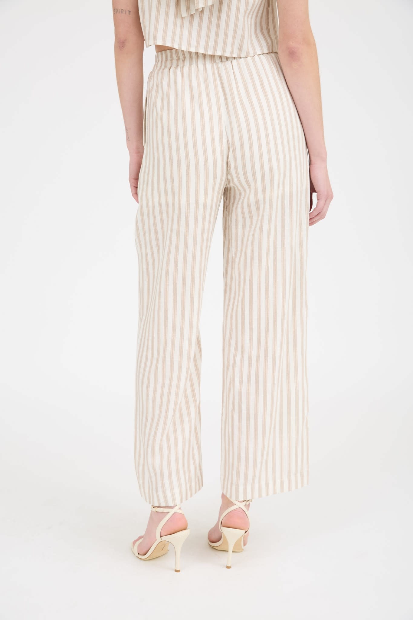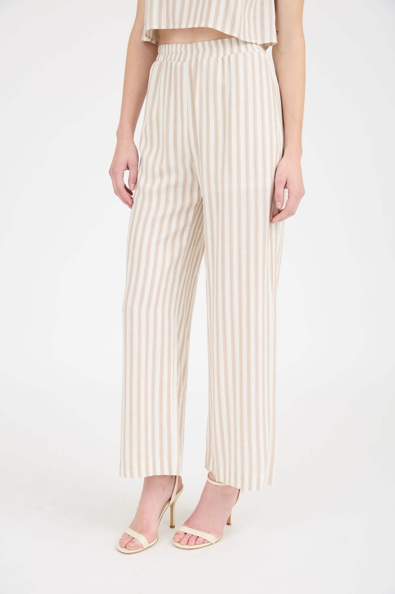 Elevate your style with these chic striped cream pants. Perfect for any occasion, these pants offer both comfort and elegance.